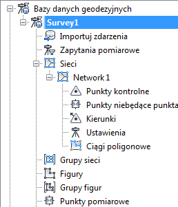 Istnieje możliwość tworzenia zapytań pomiarowych w celu filtrowania punktów i figur pomiarowych projektu. Punkty i figury można przekształcać na punkty oraz działki programu AutoCAD Civil 3D lub dodawać do powierzchni jak punkty lub linie nieciągłości.