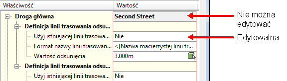 Cieniowanie właściwości niemożliwych do edycji: właściwości, które w oknach dialogowych edycji nie są możliwe do edycji, są wyświetlane z szarym (cieniowanym) kolorze tła. Właściwości możliwe do edycji są wyświetlane z białym (niecieniowanym) kolorem tła.