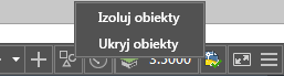 z prawej strony paska stanu okna rysunku, a następnie kliknięcie opcji i wybranie obiektów do ukrycia.