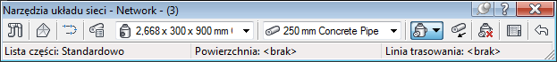 Nazwy listy części, powierzchni i linii trasowania, do których istnieją odnośniki w wybranej sieci przewodów rurowych, są wyświetlone u góry tego paska narzędzi.