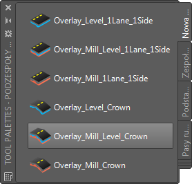 When creating a rehab corridor, you specify parameters for cross slope correction, mill, level, and overlay, and AutoCAD Civil 3D builds the assembly and the corridor to meet your specified criteria. For more information, see About Rehab Corridor Modeling.