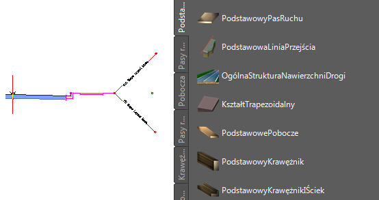 Zespół drogi (po lewej) z podzespołami wyświetlonymi na palecie narzędzi (po prawej)