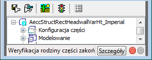 Jeśli w modelu występują błędy na pasku stanu pojawi się komunikat informujący o niepowodzeniu sprawdzania części i zostanie otwarte okno dialogowe z listą błędów. Należy zapoznać się z błędami, wprowadzić niezbędne modyfikacje i powtarzać czynności aż do uzyskania pomyślnego wyniku sprawdzania.