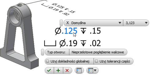 Dodawanie lub edycja opisów otworu/gwintu