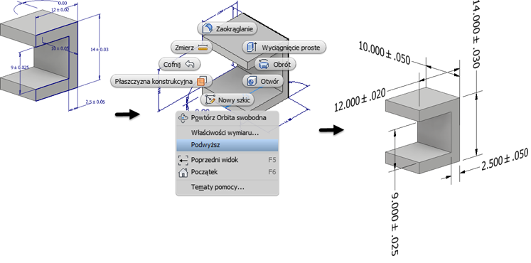 Jeśli wymiar modelu zawiera informacje o tolerancji, zostanie ona zawarta w podwyższonym wymiarze.