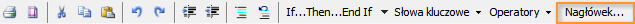 W edytorze nagłówka obsługiwane są następujące instrukcje: