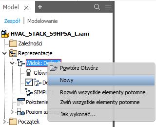 W programie Inventor dostępne są trzy typy reprezentacji: Widok, Pozycja i Poziom szczegółu. Dwa z nich, Widok i Poziom szczegółu, można wykorzystać, aby zwiększyć wydajność pracy z dużymi zespołami.