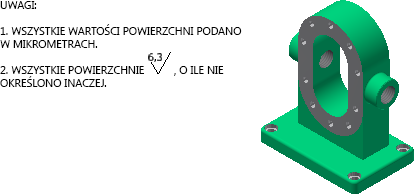 Użyj poleceń tekstu, aby dodać tekst linii odniesienia i tekst uwagi ogólnej do modelu 3D.