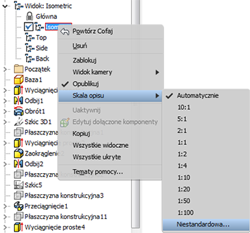 Skala opisów 3D jest niezależna od wartości opcji Skala opisu w oknie Opcje aplikacji > karta Ogólne. Kliknij prawym przyciskiem myszy reprezentację widoku, aby ustawić skalę opisu.