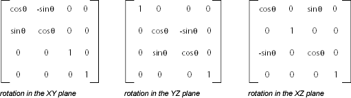 The acedXformSS() function—unlike the acedDragGen(), acedGrVecs(), or acedNEntSelP() functions—requires the matrix to do uniform scaling. That is, in the transformation matrix that you pass to acedXformSS(), the elements in the scaling vector S X S Y S Z must all be equal; in matrix notation, M 00 = M 11 = M 22 . Three-dimensional rotation is a slightly different case, as shown in the following figure: