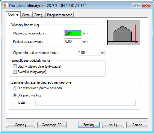 Po otwarciu okna dialogowego Obciążenia klimatyczne i naciśnięciu karty Ogólne pojawia się przedstawione poniżej okno.