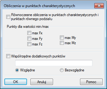 To okno dialogowe służy do definiowania współrzędnych punktów charakterystycznych, dla których zostaną przeprowadzone obliczenia lub weryfikacja pręta.