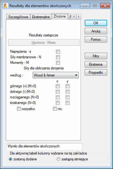 W środkowej części okna dialogowego znajduje się lista wyboru metody obliczania zbrojenia — dostępne metody to: Wood&Armer oraz NEN.