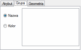 Dolna część okna przybiera wtedy pokazaną poniżej postać. Po dokonaniu selekcji i naciśnięciu przycisku otwierane jest małe okno dialogowe, w którym należy podać kolor i nazwę grupy. Po naciśnięciu przycisku Akceptuj grupa o podanej nazwie i kolorze zostanie dopisana do pola pokazanego na powyższym rysunku.