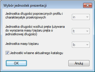 Opcja Widok / Jednostki prezentacji (lub podczas definiowania nowej bazy) pozwala zdefiniować jednostki prezentacji bazy przekrojów. Aby tego dokonać, należy: