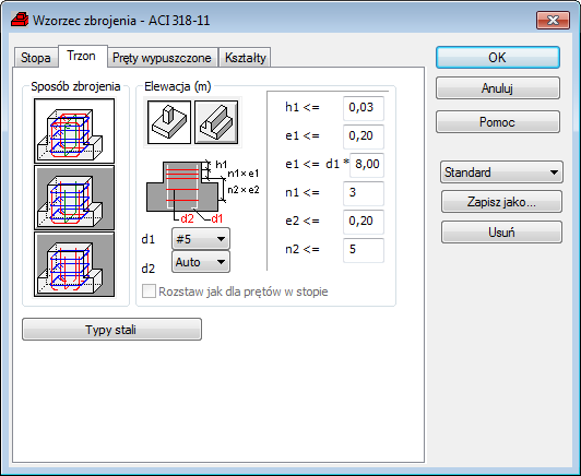 Umożliwia określenie średnicy zbrojenia poziomego (dla stopy) i pionowego (dla stopy i ławy) trzonu.