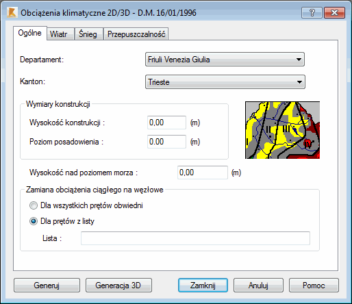 Po otwarciu okna dialogowego Obciążenia klimatyczne i naciśnięciu karty Ogólne na ekranie pojawia się przedstawione poniżej okno.
