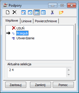 — umożliwia usunięcie wybranego typu podpory z listy aktywnej