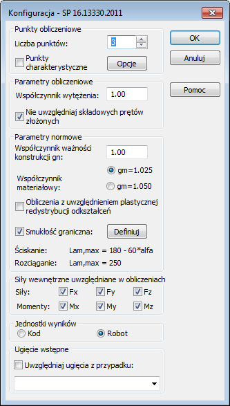 - Kliknij przycisk Definiuj, aby określić dopuszczalne wartości smukłości pręta.