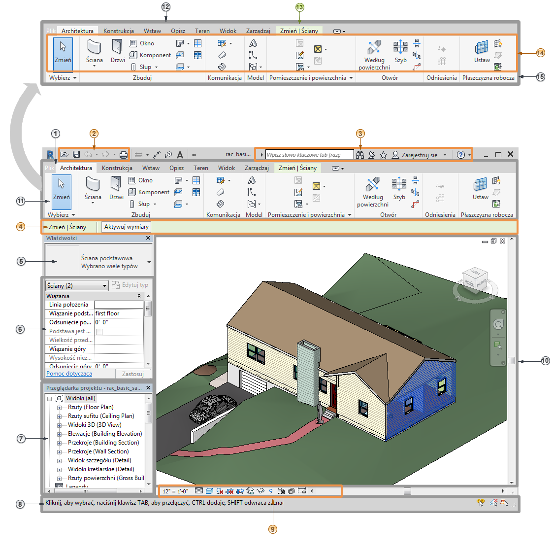 | 14 | Narzędzia na bieżącej karcie wstążki |