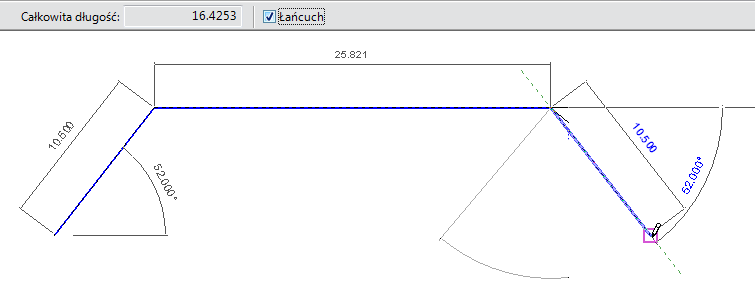 Pole Całkowita długość na pasku opcji zachowuje aktualną całkowitą długość łańcucha. Kliknij dwukrotnie, aby zakończyć łańcuch.