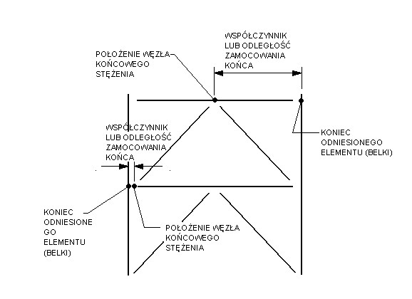Położenie każdego punktu końcowego zastrzału można kontrolować za pomocą belki, podając albo odległość, albo współczynnik długości od punktów końcowych belki. Jeśli zostanie zmienione położenie lub długość dołączonej belki, zastrzał zostanie dostosowany do zmiany w zależności od wybranych ustawień.