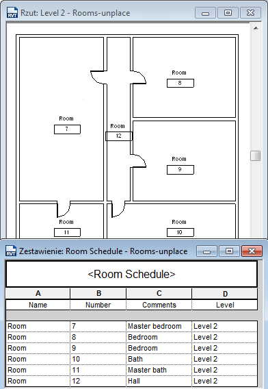 Utworzone pomieszczenia można usuwać z modelu budynku, tymczasowo lub na stałe.