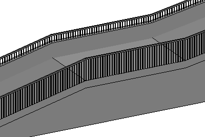 Analogicznie w przypadku dodawania poręczy do górnej powierzchni stropu, płyty stropowej, krawędzi płyty stropowej, ściany, dachu lub topografii, naszkicuj linię wewnątrz obwiedni elementu nadrzędnego.