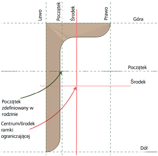 W niektórych przypadkach początek rodziny elementu ram konstrukcyjnych może nie być wyrównany ze środkiem ramki ograniczającej element.