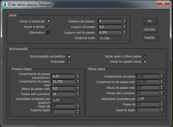 - Define o comprimento da passada para os novos passos em unidades 3ds Max.