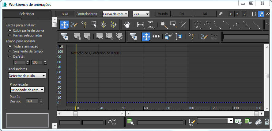 O Animation Workbench é uma versão personalizada da Vista de trilha que você pode usar para corrigir e melhorar a animação bípede. Ele amplia a funcionalidade de editores de curva existente fornecendo diferentes opções para visualizar e manipular as curvas e fornece os filtros para executar rotação geral, posição e outras operações específicas do bípede.