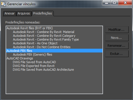 - Selecione o formato que deseja usar: AutoCAD, Revit ou Autodesk FBX.