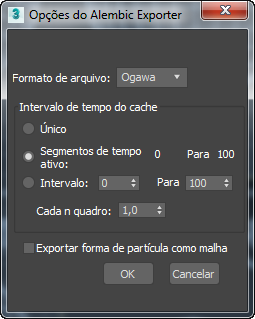 A caixa de diálogo Opções do Alembic Exporter é exibida.