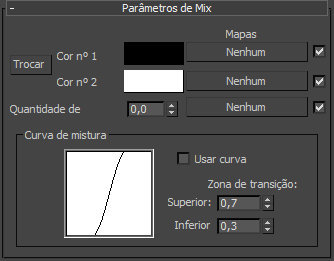Esses parâmetros controlam o quão gradual ou nítida será a transição entre as duas cores que estão sendo combinadas. (Na verdade, isso somente terá importância quando houver um mapa aplicado à Quantidade de combinação).