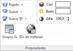 Use o painel Propriedades para ajustar a suavização de malha, as cores do vértice e os IDs de material. Encontra-se disponível ao nível do objeto e em todos os níveis de subobjeto; a disponibilidade dos comandos depende do nível.