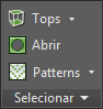 O painel Selecionar inclui as ferramentas Topos, Abrir e Padrões para a seleção de subobjetos em todos os níveis, mais a ferramenta Rígido para selecionar arestas de grupos de suavização e ferramentas de seleção adicionais para polígonos.