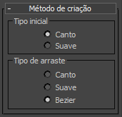 Opções de método de criação para linhas são diferentes das outras ferramentas de spline. Você seleciona as opções para controlar o tipo de vértice criado quando você clica ou arrasta os vértices.