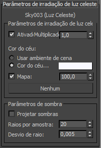 - Quando ativada, a luz celeste projeta sombras. Padrão=desativado.