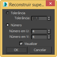 - Tolerância Recria a superfície de acordo com a precisão. Quanto menor o valor de Tolerância, mais precisa é a regeneração. Aumentar a tolerância permite que a superfície seja recriada usando menos VCs.