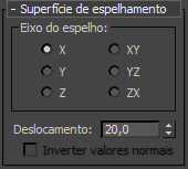 Os botões do Eixo de espelhamento controlam a direção na qual a superfície original é espelhada.