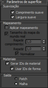 Na implementação de Parâmetros de superfície, é possível controlar a suavização da superfície da elevação, além de definir se o mapeamento da textura é aplicado ao longo do objeto de elevação.