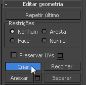 - Acesse o nível de subobjeto Polígono do objeto de polígono editável e, na implementação Editar geometria, ative Criar.