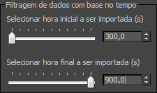 Por padrão, estes controles mostram a hora de início e fim para todos os veículos encontrados no arquivo FZP. É possível reduzir o segmento de tempo para um período específico de tempo dentro do arquivo. O Civil View ignora os dados de animação de fora desse segmento de tempo.