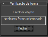 Clique nesse botão, e, em seguida, clique na forma para o utilitário verificar. É possível selecionar formas e curvas com base em spline e NURBS. Os pontos de interseção identificados pelo utilitário são realçados com caixas vermelhas. O texto abaixo do botão indica se ocorreu algum ponto de interseção.