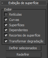 Os controles na implementação Exibição de superfície são os mesmos controles de exibição para objetos de superfície NURBS, com dois botões adicionais: Definir selecionado e Redefinir.