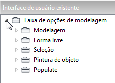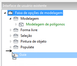Por padrão, a lista contém apenas os recursos ativos na faixa de opções. Por exemplo, se nenhum objeto for selecionado, a ramificação das Ferramentas de modelagem do Graphite conterá somente o painel Modelagem de polígonos, mas se um objeto de polígono editável for selecionado, inúmeros painéis adicionais aparecerão nessa ramificação.