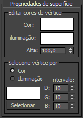 Dependendo de qual botão de opções seja selecionado, seleciona todos os vértices cujos valores de cor ou de iluminação de vértice coincidam com a amostra de cor ou estejam dentro da faixa especificada pelos giradores RGB.