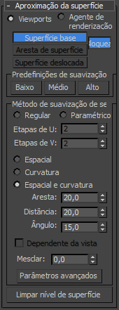 Os valores predefinidos são salvos no arquivo 3dsmax.ini . É possível personalizar os valores predefinidos usando o utilitário de Aproximação da superfície.
