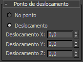 Habilita o deslocamento do ponto. Use os controles giratórios de Deslocamento X, Y, Z para definir os valores de deslocamento (nas coordenadas do espaço de objeto).
