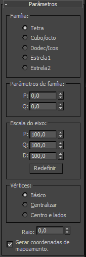 Use este grupo para selecionar o tipo de poliedro a criar.